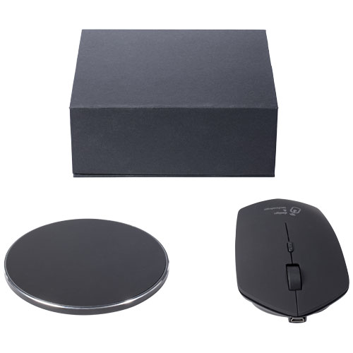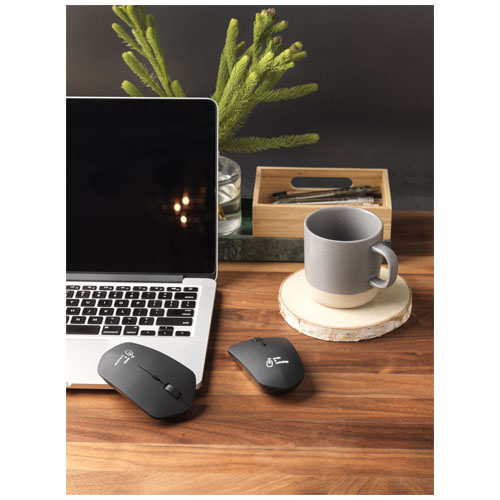 Mouse e base per mouse per ricarica wireless a induzione da 10 W utilizzabile sia in viaggio che in ufficio grazie alla prolunga di 30 cm (realizzata in RPET). Brevetto EUIPO EUROPA.