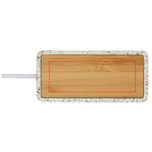 Hub USB 2.0 in terrazzo naturale e bambù. Include 1 uscita di tipo C e 3 uscite USB-A. Fornito in una confezione regalo con manuale di istruzioni (entrambi realizzati con materiali ecosostenibili).