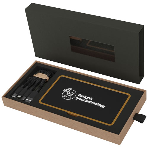 Power bank in legno con trattamento antibatterico e logo luminoso. Il logo si illumina per 30 secondi quando la batteria è carica e rimane acceso durante la ricarica. Cavo di ricarica 3 in 1 (iPhone/Android/Tipo C). Doppia uscita USB 2 A. Fornita in confezione regalo, realizzata in carta riciclata.