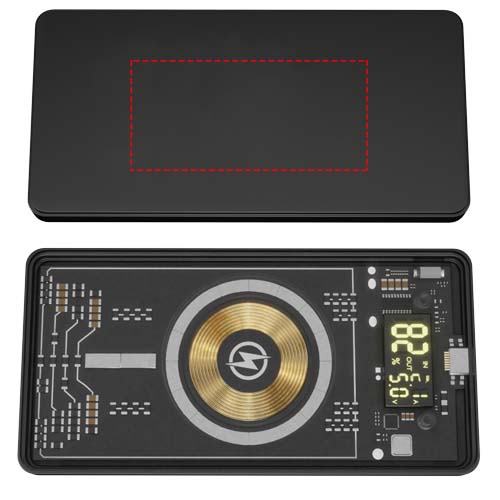 Power bank magnetico da 5000 mAh per la ricarica wireless (14 x 7 x 1,3 cm) con funzione di ricarica wireless da 5 W, display digitale e uscita/ingresso USB di tipo C. La tecnologia di questo power bank è visibile sul retro grazie al rivestimento trasparente che mostra il circuito stampato. La parte anteriore presenta una finitura soft-touch in gomma e un logo luminoso adatto per l'incisione laser. Il power bank è dotato di una doppia uscita USB 2 A ed è realizzato con minimo il 50% in plastica ABS. Se il telefono non dispone della tecnologia MagSafe (a partire da iPhone 12), l'anello magnetico adesivo (incluso) può essere attaccato sul retro per renderlo compatibile con il supporto magnetico. Consegnato con un cavo di ricarica 3 in 1 (tipo C, micro USB, iPhone) realizzato in PET riciclato. Fornito in una confezione regalo (20,1 x 10 x 2 cm) con chiusura magnetica. Garanzia di 3 anni inclusa.