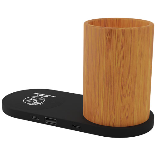 Stazione di ricarica wireless da 10 W con logo luminoso e portamatite in bambù SCX.design W17 - 1PX078