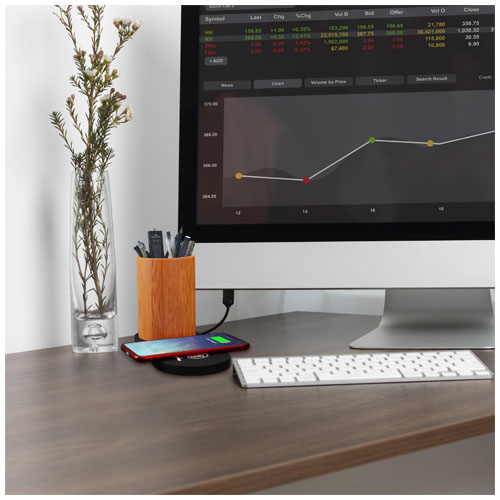 Stazione di ricarica wireless da 10 W con logo luminoso e portamatite in bambù SCX.design W17