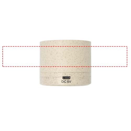 Altoparlante Bluetooth® realizzato con un mix di plastica e paglia di grano, per ridurre la quantità di plastica necessaria. L'altoparlante produce un suono cristallino per oltre 1,5 ore di riproduzione al volume massimo con potenza 3W. Bluetooth® 5.0. Confezionato in una scatola regalo e fornito con manuale di istruzioni (entrambi realizzati in materiale ecosostenibile). Cavo di ricarica Tipo-C incluso.