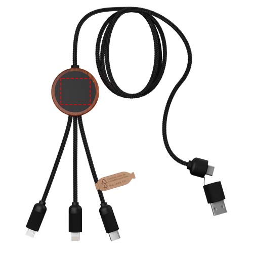 Cavo di ricarica da 40 W 5 in 1 in rPET riciclato con logo luminoso e custodia rotonda in legno SCX.design C37 - 2PX071