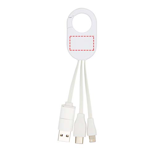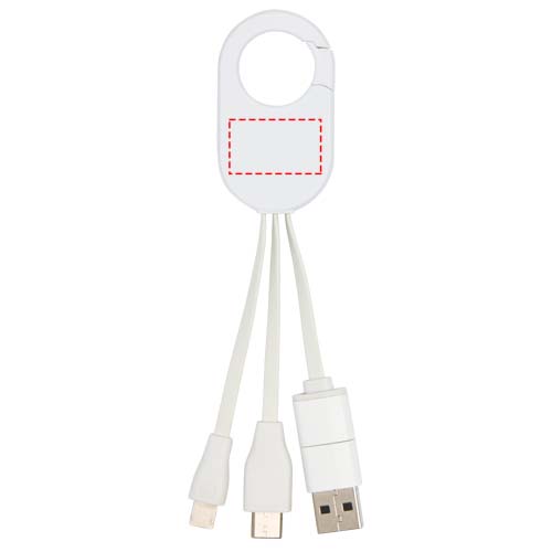 Il cavo di ricarica Troop 4-in-1 realizzato in plastica riciclata, presenta connettori di ingresso USB-A e Tipo-C abbinati a connettori di uscita combinata di Tipe-C e Lightning/Micro USB, che consentono di ricaricare la maggior parte di smartphone, fotocamere, power bank e auricolari. Il moschettone incorporato consente di agganciarlo facilmente a una borsa o a un portachiavi, per essere sempre a portata di mano per alimentare i dispositivi ovunque.
