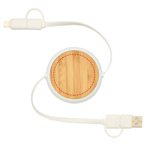 Cavo retrattile 5 in 1 in plastica riciclata da 100 cm per la sincronizzazione dei dati e la ricarica rapida da 45 W con dettagli in bambù Chechia - 124419
