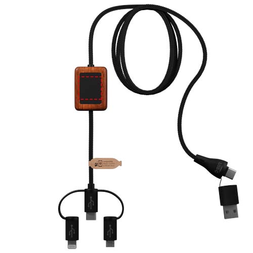 Cavo di ricarica in gomma dalla finitura in bambù con trasferimento dati e doppio logo luminoso. Il cavo è realizzato con materiali sostenibili: plastica ABS riciclata e bottiglie in rPET riciclato. Si può utilizzare con Apple CarPlay e Android Auto per le app auto. Grazie alla sua doppia uscita USB-A + USB-C, il cavo è compatibile con i computer più recenti presenti sul mercato (USB-C). Il cavo può essere personalizzato con due loghi luminosi (uno su ogni lato). Lunghezza del cavo: 1 metro. Fornito in un astuccio in TPU (17,5 x 5,5 cm) e un biglietto di carta. Garanzia di 3 anni inclusa.