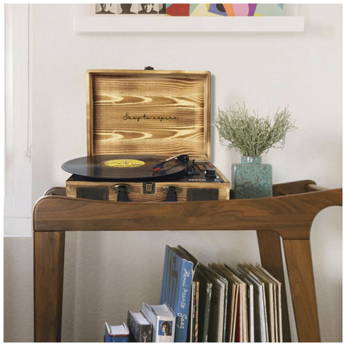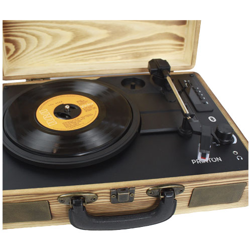 Lettore di vinile e musica tramite Bluetooth, USB, TF e radio FM. Digitalizza il vinile in formato WAV attraverso l'ingresso USB e lo slot TF. Dispone di uscite RCA per l'audio e per le cuffie. Inclusa una puntina a stilo rubino per riprodurre i dischi delicatamente. Con design a forma di valigetta. Collega un telefono cellulare al Bluetooth e utilizza la funzione di speaker. Velocità: 33,3/45/78 giri/min. Testina rubino inclusa.
