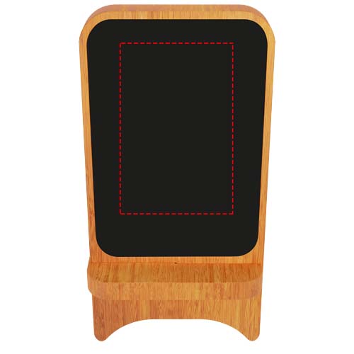 Caricabatterie wireless da 15 W realizzato in gomma e bambù con trattamento antibatterico e logo luminoso. Ingresso Tipo-C. Fornito in una confezione regalo nera realizzata in carta kraft riciclata che include un cavo in plastica PET riciclata. Brevetto EUIPO EUROPA. Questo articolo può essere stampato anche con la stampa digitale, che ti permette di aggiungere un logo luminoso a colori sull'area designata.