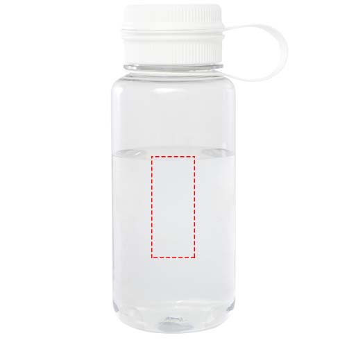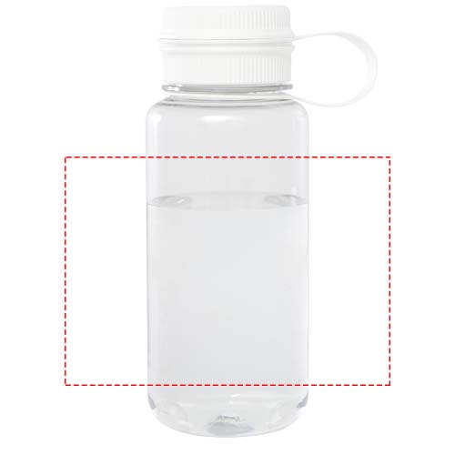 Borraccia sportiva a parete singola realizzata in PET riciclato certificato RCS, dotata di tappo a vite e coperchio a prova di perdite con una comoda maniglia per il trasporto integrata nel tappo. Struttura a doppia apertura per una pulizia e un riempimento semplice. In conformità con il processo di riciclaggio del PET approvato dall'EFSA (Autorità Europea per la Sicurezza Alimentare). Capacità: 900 ml.