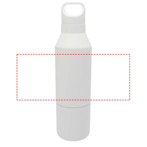 Borraccia termica in rame a doppia parete in acciaio inossidabile con certificazione RCS dotata di tazza rimovibile. Questa borraccia multiuso è progettata per essere inserita nella tasca laterale di uno zaino ed è dotata di un comodo manico per il trasporto integrato nel tappo. Verniciatura a polvere esterna resistente. Mantiene le bevande calde per 12 ore o fredde per 24 ore. Fornita in una confezione regalo in cartone riciclato. Capacità della borraccia: 600 ml. Capacità della tazza: 300 ml.