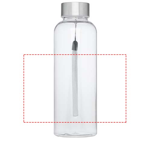 Borraccia sportiva a parete singola in materiale resistente con coperchio a vite. Resiste a urti, macchie e odori. Il coperchio è dotato di un cinturino per un facile trasporto. Senza BPA. Capacità di 500 ml.