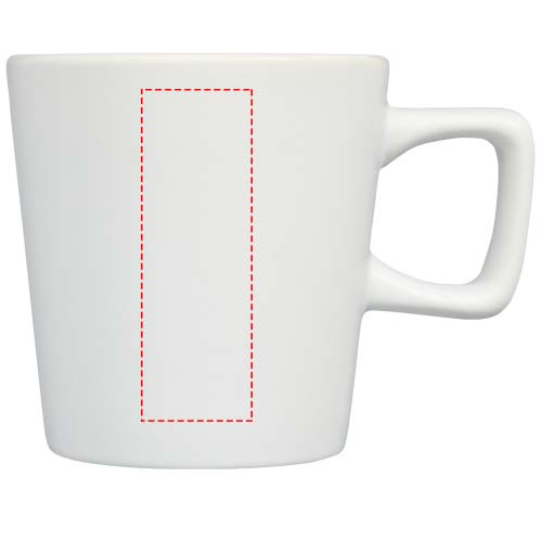 Tazza in ceramica dal design moderno con finitura opaca. Capacità di 280 ml. Sempre lavabile in lavastoviglie, indipendentemente dal metodo di personalizzazione impiegato. Fornita in una confezione regalo in cartone riciclato.