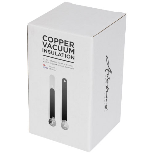 Questo bicchiere compatto e resistente è ideale per i viaggi. Il tappo è antiperdita grazie alla chiusura ermetica con apertura a scatto. Il bicchiere è dotato di una struttura sottovuoto a doppia parete in acciaio inox con isolamento in rame che mantiene le bevande al caldo per 8 ore e al fresco per 24 ore. La sua particolare struttura inoltre evita la formazione di condensa sulla superficie esterna. Capacità massima 380 ml. Presentato in confezione regalo Avenue.