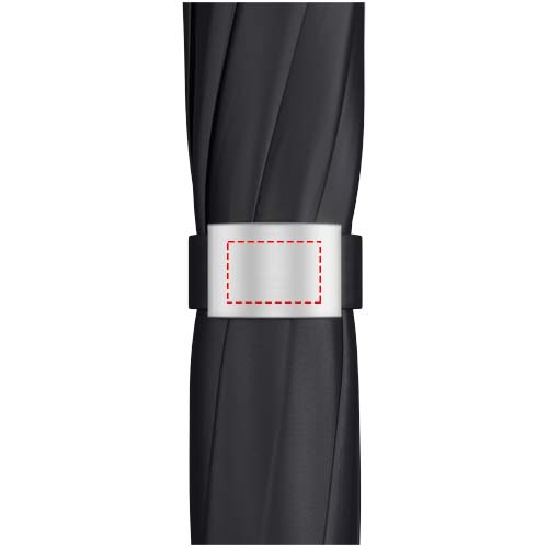 Ombrello da golf realizzato con pongee in rPET 210T e struttura in fibra di vetro. Impugnatura morbida con pulsante integrato per un'apertura rapida. Sistema antivento per una migliore resistenza al vento grazie al telaio flessibile. Prodotto personalizzabile sull'esclusiva targhetta metallica con bottoni. Fornito con una custodia per ombrello e consegnato in una confezione regalo cilindrica in carta riciclata (96 x 5,5 cm).
