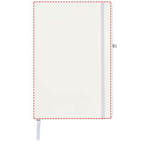 Notebook A5 con chiusura elastica in colore coordinato, anello portapenna e nastro segnapagina. Composto da 96 fogli di carta a righe da 70 g/m2. Copertina in similpelle soft feel.