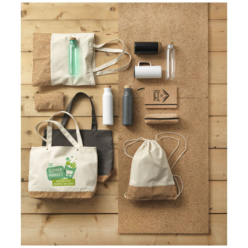 Block-notes in formato A5 con copertina in sughero ed elastico e nastro neri. Inclusi 80 fogli a righe (70 g/m²).