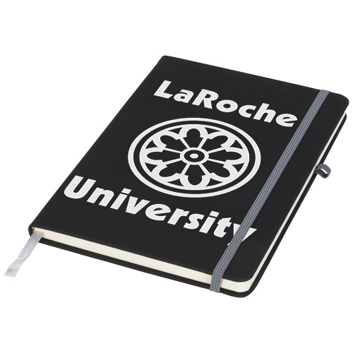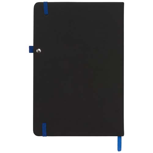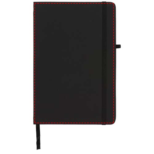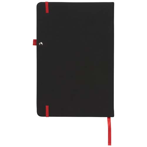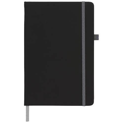 Il block-notes Noir è dotato di una copertina nera in PU che offre un piacevole effetto di morbidezza al tatto. Ciascun block-notes è dotato di chiusura a fascetta, anellino portapenna e nastrino segnapagina colorati. Il block-notes contiene 96 fogli a righe color crema (70 g/m²).