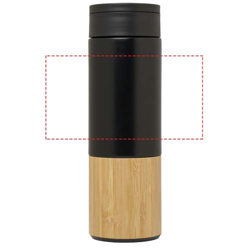 Il set da regalo Carmen comprende un blocco note in formato A5 con copertina rigida, una penna a sfera, una borraccia e un ombrello. Il blocco note è dotato di chiusura con elastico nera e di un segnalibro, nonché di 80 fogli a righe in carta color crema da 80 g/m². La copertina del blocco note dotata di semicerchio in bambù funge da supporto per telefono. La penna a sfera è realizzata in alluminio riciclato certificato RCS con rivestimento verniciato a spruzzo nero e impugnatura in bambù. Inchiostro penna: Nero. Capacità di scrittura: 1000 metri. La borraccia da 450 ml è realizzata in acciaio inossidabile con un accessorio in bambù sul bordo inferiore. Lavarla solo a mano. Dimensioni della bottiglia: 6,6 x 22,2 cm. L'ombrello da 21 pollici è dotato di telo in tessuto pongee nero, fusto in metallo nero, stecche in fibra di vetro nera e manico in bambù. Dimensioni dell'ombrello: 28,3 x 5,5 cm. Dimensioni confezione regalo: 36 x 30 x 8 cm.