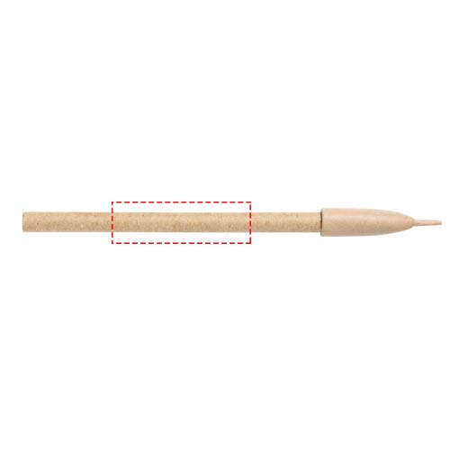 Penna a sfera in carta riciclata con cappuccio. Capacità di scrittura +/- 700 m. Il colore della carta riciclata può variare.