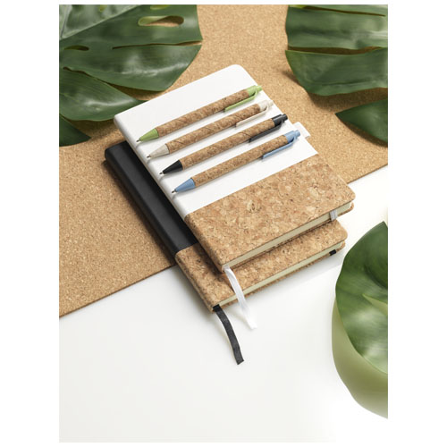 Penna a sfera ecologica con meccanismo a scatto, con serbatoio in sughero e finiture in paglia di grano, disponibile in una varietà di colori. La paglia di grano è il gambo rimasto dopo la raccolta dei chicchi di grano. Con questo materiale è possibile ridurre la quantità di plastica utilizzata, fornendo un'alternativa ecologica. Il colore del sughero può variare.