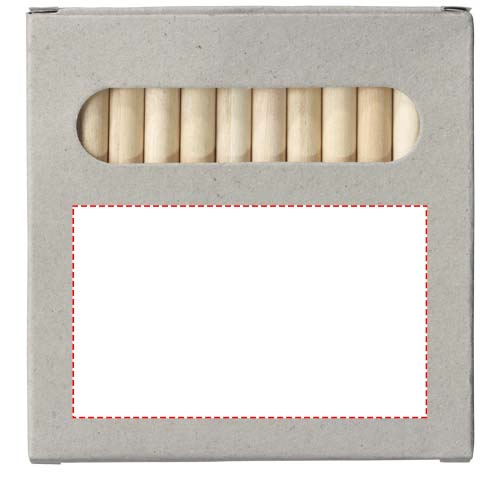 12 matite colorate confezionante in una scatola di cartoncino. Personalizzazione non disponibile sulle matite.