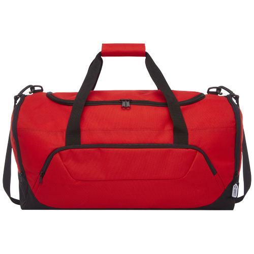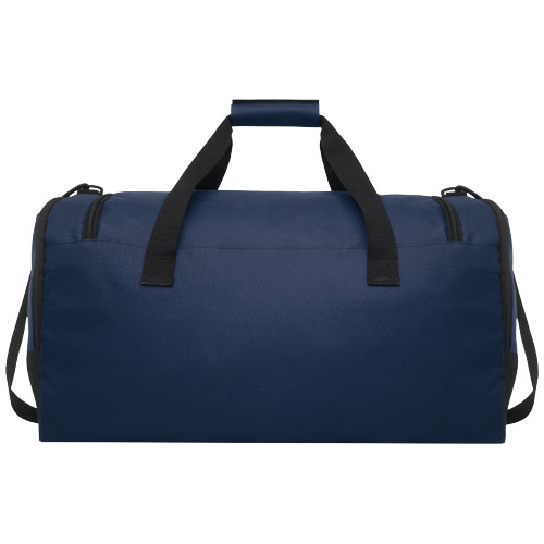 Borsone resistente, realizzato in plastica riciclata post-consumo al 100%, che contribuisce alla riduzione dei rifiuti di plastica. Dispone di un ampio scomparto principale e tasca frontale con cerniera, tracolla e maniglie imbottite. Per realizzare questa borsa, sono state riciclate circa 27 bottiglie.