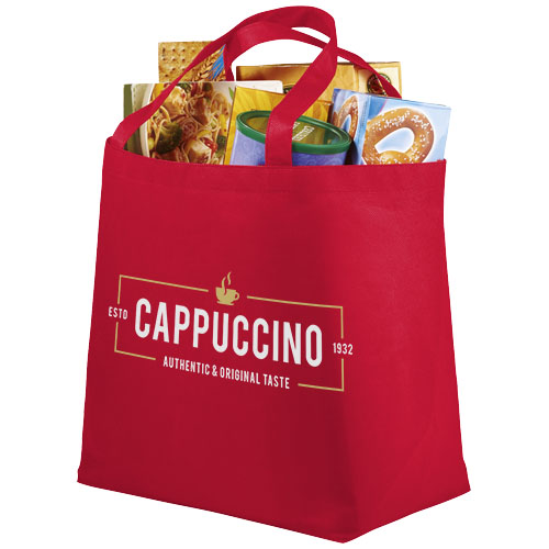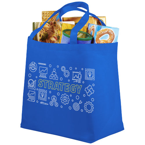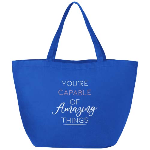 La tote bag Maryville è una buona alternativa alla borsa di plastica monouso. Lascia abbastanza spazio per stampare loghi o testi, e il tessuto non tessuto rende la tote bag solida ed adatta ad una vasta gamma di usi. I manici sono di 18 cm, il che significa che la tote bag può essere facilmente portata a mano o sulla spalla. Inoltre, l'ampio scomparto principale rende facile riporre più oggetti. In breve: la borsa ideale per lo shopping o per una giornata in spiaggia o al parco. Portata massima 10 Kg.