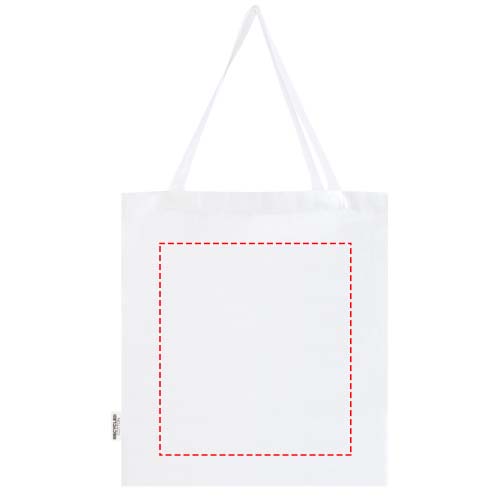 La tote bag a soffietto Madras realizzata in cotone riciclato al 100% certificato GRS è perfetta da regalare durante un evento, una conferenza, oppure da utilizzare come shopper per la spesa. La densità del cotone di 140 g/m² rende questa borsa robusta, resistente e adatta per trasportare oggetti pesanti nello scomparto principale. Grazie ai manici a spalla lunghi 30 cm, questa tote bag è facile da trasportare. Anche i metodi di stampa disponibili per questa tote bag sono certificati GRS, assicurando che l'intera catena di fornitura sia trasparente e certificata. Realizzata in India. Resistenza fino a 5 kg di peso.