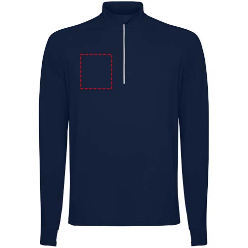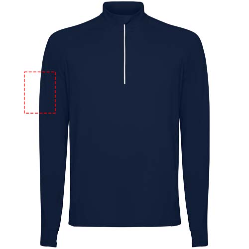 Felpa tecnica da uomo a maniche lunghe raglan. Collo con design a mezza zip invertita caratterizzato da dettagli riflettenti. Coperture per cuciture rinforzate. Polsini con aperture per i pollici. Dettagli catarifrangenti sul retro. Orlo posteriore leggermente più lungo di quello anteriore. Caldo tessuto interno spazzolato.