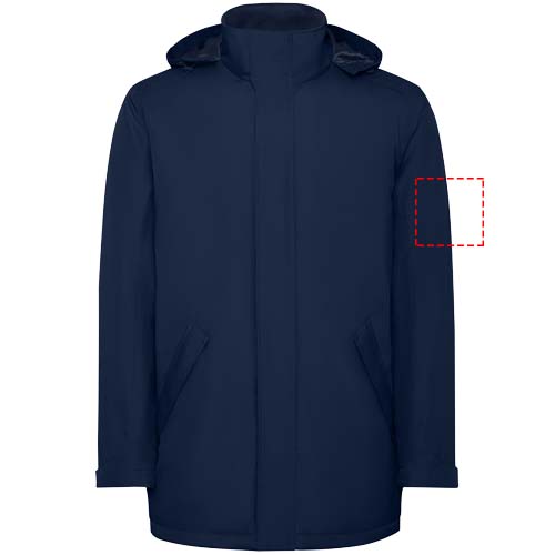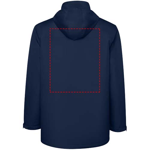 Giacca parka impermeabile e imbottita da bambino. Collo alto con cappuccio ripiegabile e chiusura a strappo. Zip centrale abbinata con pattina. Tasche laterali con zip e pattina fissa. Tasca interna con chiusura a strappo. Polsini regolabili con passante a strappo. Accesso interno per rinforzi sul retro e sul petto a sinistra.