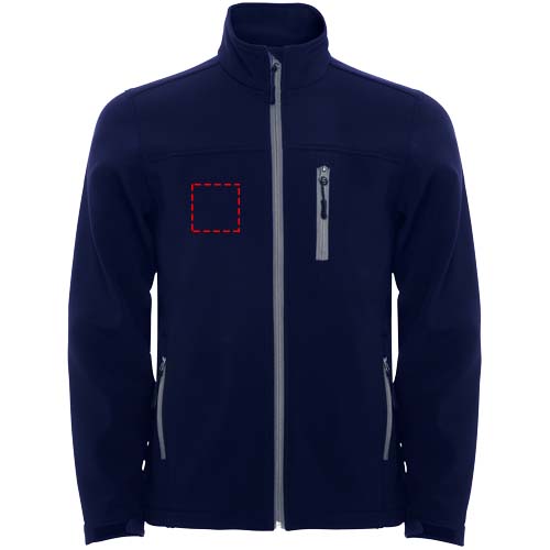 Softshell a doppio strato. Cerniera invertita, effetto sigillato, con protezione per il mento e tiretto abbinato. Tre tasche esterne con cerniera e tiretto abbinato. Regolatori sul polso con velcro. Chiusure in velcro sui polsi. Orlo inferiore regolabile con cordoncino regolabile e fermi. Impermeabilità di 1.000 mm. Tessuto anti-vento. Il modello è alto 129 cm ed indossa una taglia 5/6.