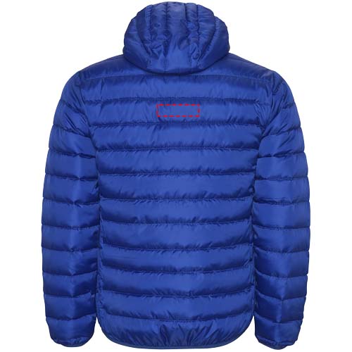 Giacca da uomo trapuntata morbida al tatto e cappuccio regolabile. Cerniere invertite con protezione per il mento abbinata. Due tasche anteriori con cerniera. Orlo elasticizzato abbinato sui polsini, sull’orlo e sul cappuccio. Fodera interna a contrasto. Inclusa borsa per riporta e trasportarla. Indumento leggero e ripiegabile. Idrorepellente. Modello anti-vento.