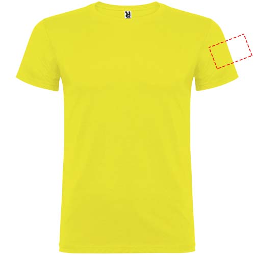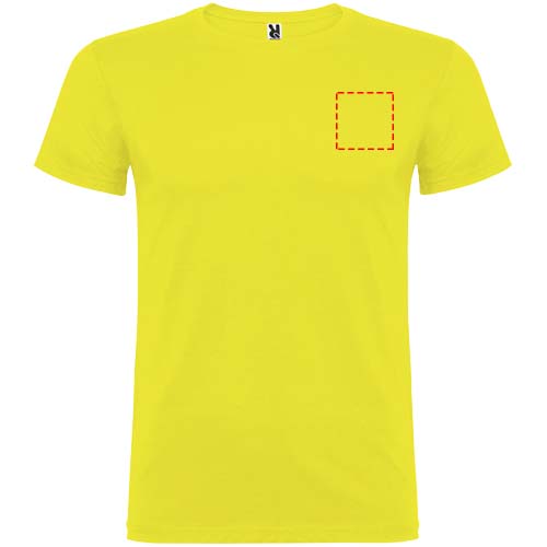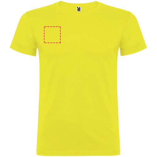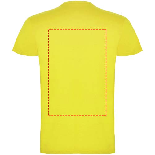 T-shirt a maniche corte con girocollo a doppio strato in elastan, realizzata in tessuto tubolare per adulti. Copri cuciture rinforzate sul colletto. Etichetta rimovibile. Il modello è alto 120 cm ed indossa una taglia 5/6.