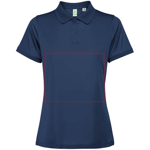 Polo aderente a maniche corte da donna. Cuciture coperte e rinforzate nel colletto interno. Polsini e colletto a costine 1x1. Cuciture laterali. Chiusura con 3 bottoni e spacchetti laterali.