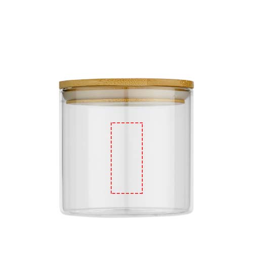 Contenitore per alimenti in vetro di piccole dimensioni con coperchio in bambù. Unisce i vantaggi del vetro, un materiale sicuro e durevole, alle caratteristiche rinnovabili del bambù. Il contenitore di vetro (senza coperchio) è adatto per il microonde e lavabile in lavastoviglie. Confezionato all'interno di una scatola in carta kraft riciclata. Capacità: 320 ml.