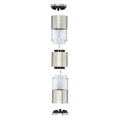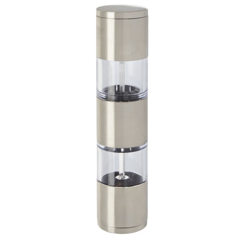 Macinino a doppia funzione con un'estremità per il sale e l'altra per il pepe. Pepe e sale non inclusi.