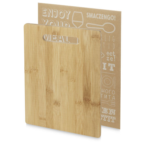Tagliere di bambù ottenuto e prodotto in base a standard sostenibili. Il tagliere può essere utilizzato anche per servire tapas.