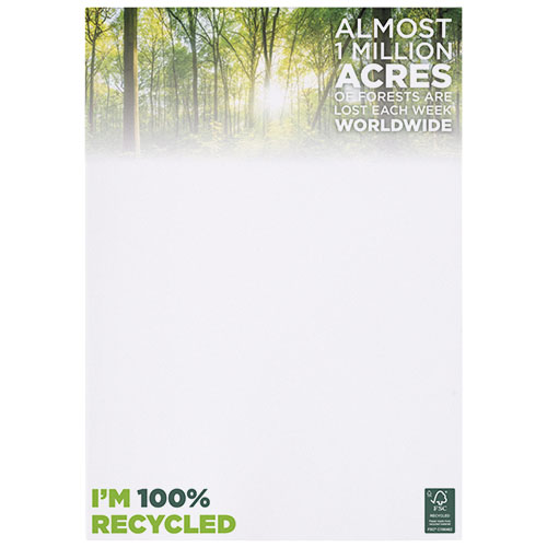 Blocco note A4 in carta riciclata Desk-Mate® in carta riciclata da 80 g/m2. Stampa full color disponibile su ciascun foglio. Disponibile in tre formati (25/50/100 fogli).