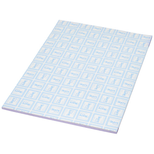 Blocco note Desk-Mate® di colore bianco e formato A4. La versione standard Include 50 fogli di carta da 80 g/m2. Stampa full color disponibile su ciascun foglio. Disponibile in 3 versioni (25/50/100 fogli).