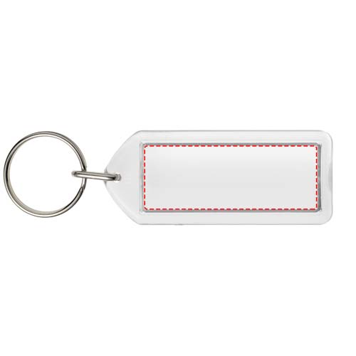 Portachiavi F1 rettangolare trasparente con anello in metallo diviso. Questo portachiavi può essere riaperto con una moneta. L'anello di metallo a loop ha un profilo piatto ideale per le spedizioni. Dimensioni dell'inserto stampato: 5,0 cm x 2,0 cm.