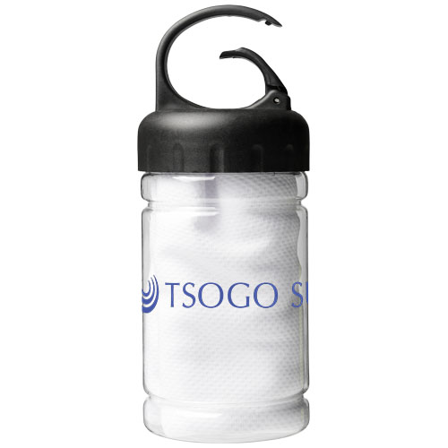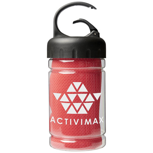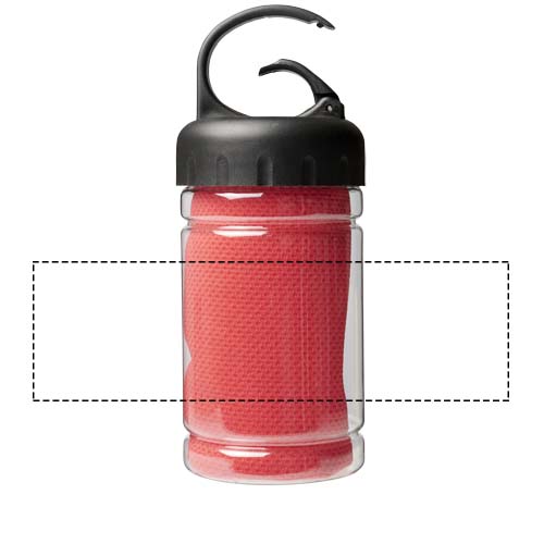 Asciugamano rinfrescante ad assorbimento rapido, ad asciugatura rapida e lavabile, realizzato in poliestere resistente e duraturo, per rimanere freschi durante l'allenamento o attività all'aperto. Fornito in un contenitore in PET con maniglia e moschettone integrato per un facile trasporto. Disponibile in 5 nuovi colori. Ampia area decorativa del logo sul contenitore, decorazione possibile anche sull'asciugamano stesso. Dimensione: 30 x 80 cm.