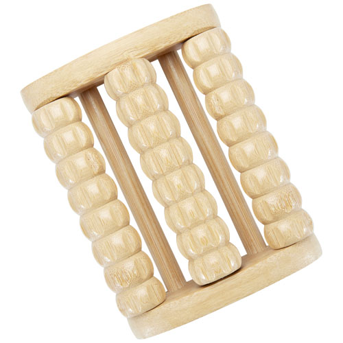 Rodillo de masaje para pies hecho de bambú con 3 hileras de barras de masaje y material antideslizante en la parte inferior. Solo tiene que colocar el masajeador en el suelo y luego mover los pies para una agradable sensación de relajación. El bambú utilizado se obtiene y produce según normas de sostenibilidad.