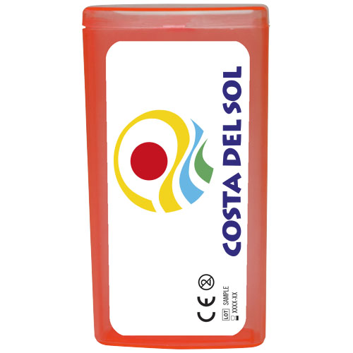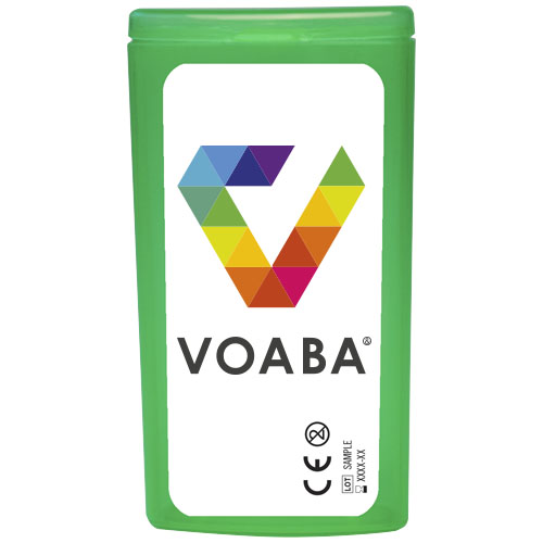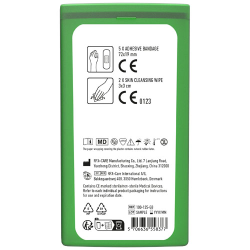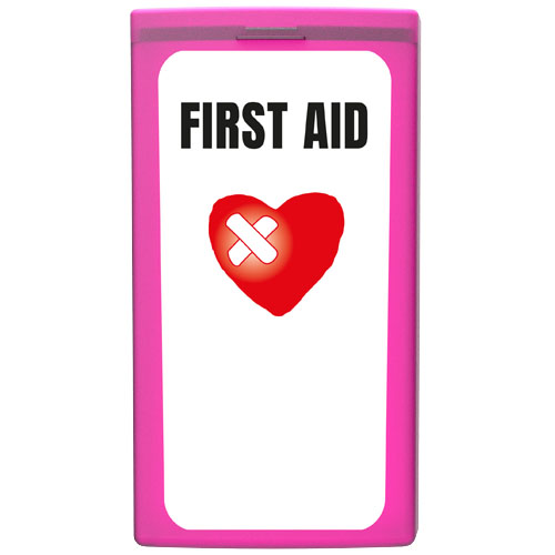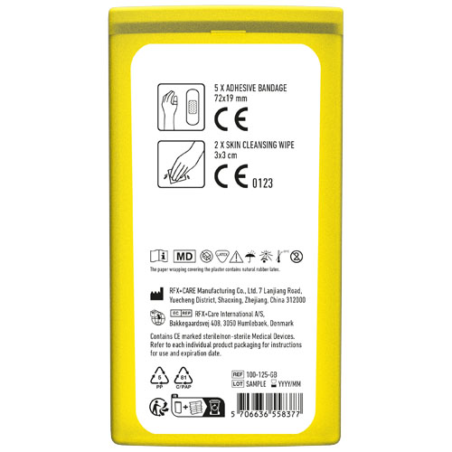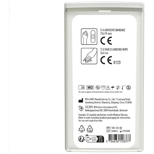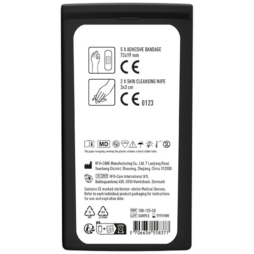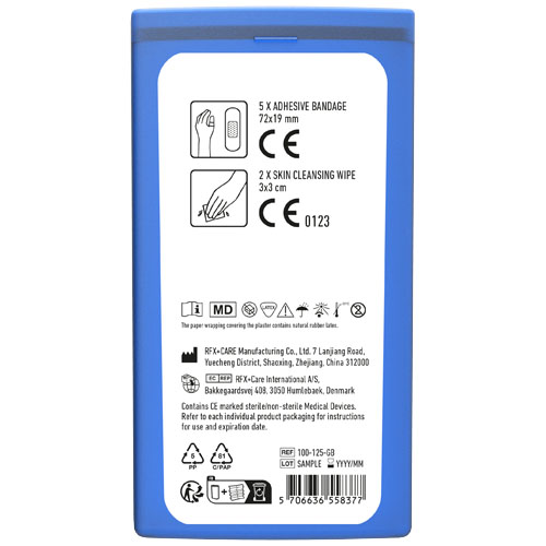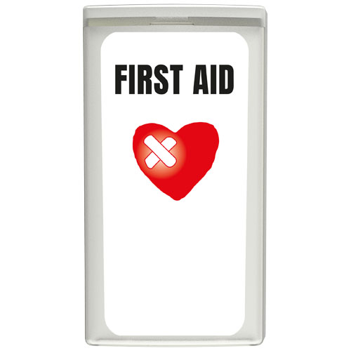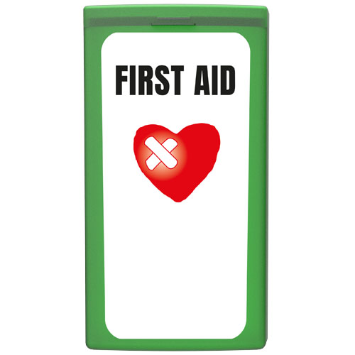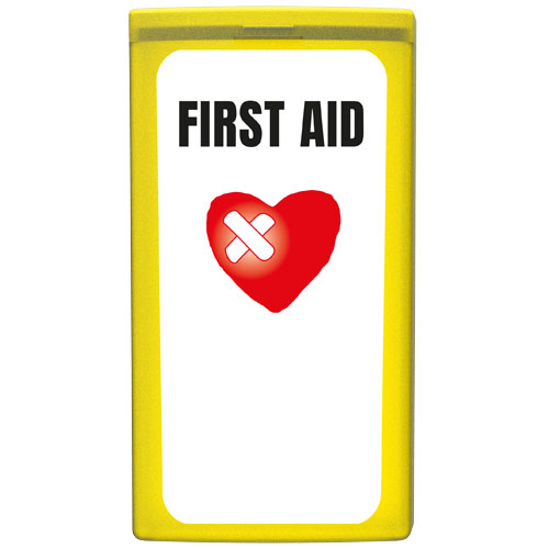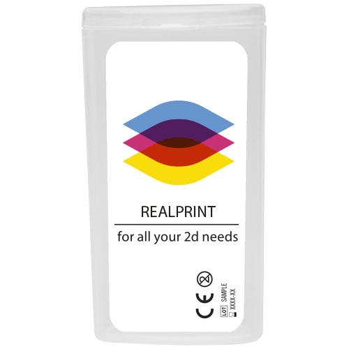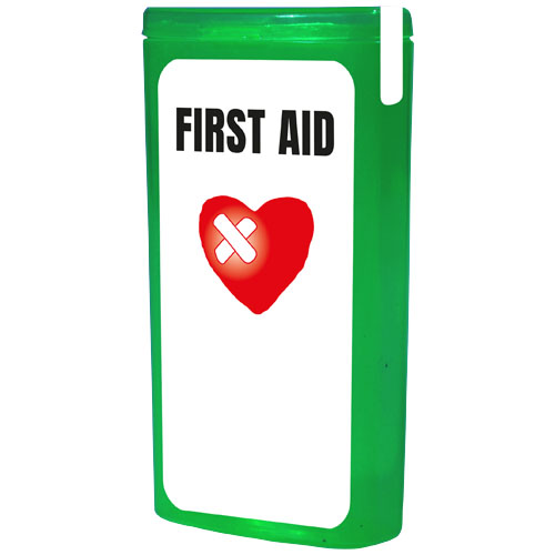 Il kit di primo soccorso compatto ideale. Le dimensioni di questo kit consentono di portarlo sempre con voi. Con questo kit sarete preparati per i piccoli incidenti. Contenuto: 5 cerotti resistenti all'acqua, 2 salviettine disinfettanti. Tutti i prodotti contenuti nei MyKit rispettano le norme Europee vigenti. I prezzi includono stampa all-over fronte e retro.