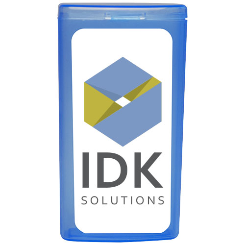 Il kit ideale di cerotti da protare sempre con voi per ogni evenienza. Le dimensioni di questo kit consentono di portarlo sempre con voi. Contenuto: 10 cerotti standard. Tutti i prodotti contenuti nei MyKit rispettano le norme Europee vigenti. I prezzi includono stampa all-over fronte e retro.