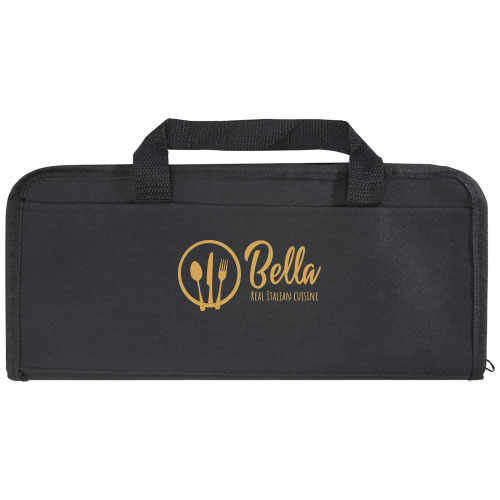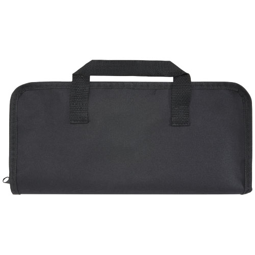 Set da barbecue composto da 5 pezzi: spatola (29 x 7 cm), forchettone (29 x 1,7 cm), coltello (29 x 2,4 cm), tagliere (19 x 13 x 1,1 cm) e guanto (25 x 16 cm).