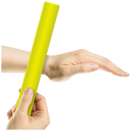 I cinturini a scatto catarifrangenti offrono una visibilità a 360° di notte e sono ideali per i messaggi promozionali. Utilizzando questi cinturini a scatto certificati, la sicurezza stradale diventerà un tratto distintivo del tuo marchio. Un cinturino a scatto è un catarifrangente di forma allungata con una molla sviluppata appositamente e saldata all'interno. Con un colpo leggero, si avvolge facilmente intorno al braccio o alla caviglia. Disponibile in varie dimensioni in colore bianco o giallo. Presenta una pellicola catarifrangente fluorescente RFX™ morbida, realizzata in PVC privo di ftalati o in una versione più sostenibile in TPU. I materiali sono stati testati in conformità con la normativa SVHC (Substances of Very High Concern) REACH candidate list relativa alle sostanze estremamente problematiche e sono privi di ftalati. I cinturini a scatto sono testati e approvati CE in conformità con la norma EN 17353 Tipo B 2. Forniti con foglietto illustrativo. Realizzati in Europa.