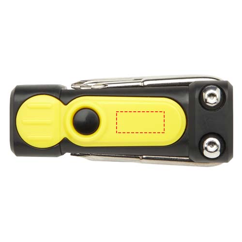 Set di cacciaviti compatto 8 in 1 con torcia realizzato al 20% con plastica riciclata certificata RCS. Il Recycled Claim Standard (RCS) verifica il contenuto riciclato di un prodotto durante tutte le fasi della catena di fornitura. Questo pratico strumento è dotato di 2 luci LED, 3 punte a croce e 3 piatte. Include tre batterie LR44. Confezionato all'interno di una confezione regalo STAC realizzata da fonti sostenibili.