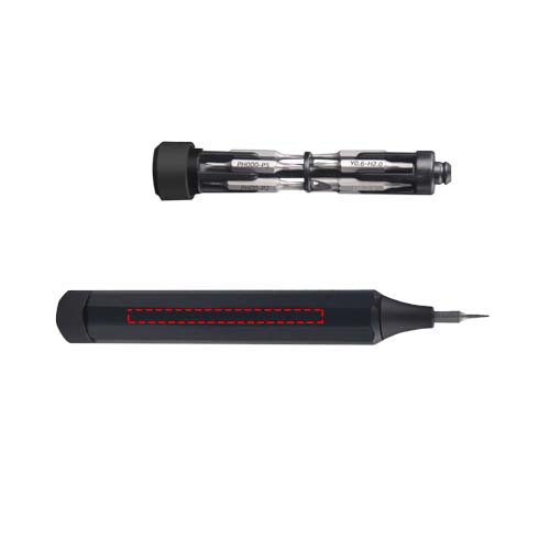 Set di cacciaviti di precisione in alluminio, dotati di 10 punte a doppia testa nascoste al suo interno. Le diverse punte si attaccano al corpo del cacciavite con una funzione magnetica e sono adatte per essere utilizzate per la maggior parte dei dispositivi tecnologici. Prodotto personalizzabile con incisione laser. Fornito in una confezione regalo in carta riciclata.